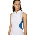 Das J.Lindeberg Krissi Kleid verkörpert sportliche Eleganz und Performance für die moderne Golferin. Dieses ärmellose Golfkleid, gefertigt aus Premium Sport-Jersey-Stoff, kombiniert 79% Polyester mit 21% Elastan, um eine weiche, flexible Passform mit hervorragender Formbeständigkeit zu gewährleisten. Die strategisch platzierten, farblich abgesetzten Mesh-Einsätze an den Seiten verbessern nicht nur die Luftzirkulation, sondern verleihen dem Design auch eine dynamische, sportliche Ästhetik. Mit einem Polokragen und einem halblangen Reißverschluss bietet das Kleid eine klassische Silhouette, während die technische Funktionalität – wie der 4-Wege-Stretch und die feuchtigkeitsableitenden Eigenschaften – maximalen Tragekomfort bei jeder Bewegung sicherstellt. Ideal für ambitionierte Golferinnen, die Wert auf Stil, Performance und nachhaltige Qualität legen.