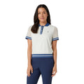 Dieses Damen-Polohemd von Original Penguin vereint technologische Stoffinnovation mit einem ansprechenden Design. Die hochwertige Mischung aus 44% Polyester, 44% recyceltem Polyester und 12% Elastan gewährleistet exzellente Atmungsaktivität und schnelle Trocknung, um Sie auch bei intensiven Golfrunden stets kühl und komfortabel zu halten. Der integrierte Stretch-Anteil garantiert eine uneingeschränkte Bewegungsfreiheit für jeden Schwung und eine optimale Passform. Das trendige Colourblocking-Muster in Beige mit blauen Akzenten verleiht dem Poloshirt eine moderne Ästhetik und macht es zum Hingucker auf dem Golfplatz. Es ist ideal für Golferinnen, die Wert auf Performance, Stil und Umweltbewusstsein legen und eine gute Figur machen möchten, ohne Kompromisse bei der Funktionalität einzugehen.