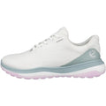 Die ECCO LT1 Golfschuhe wurden speziell für Golferinnen entwickelt, die keine Kompromisse bei Komfort und Performance eingehen möchten. Das innovative Design kombiniert fortschrittliche Materialien mit bewährten Technologien, um ein erstklassiges Spielerlebnis zu gewährleisten. Das Herzstück bildet der ECCO LYTR Foam, ein ultra-leichtes Material, das eine hervorragende Dämpfung und Energierückgabe bietet, wodurch Ermüdungserscheinungen auch auf langen Runden minimiert werden. Die integrierte wasserdichte Membran schützt zuverlässig vor Feuchtigkeit, während das hochwertige ECCO Performance Leder für eine optimale Atmungsaktivität sorgt. Die einzigartige E-DTS NET Außensohle mit ihrer multidirektionalen Traktion garantiert auch auf anspruchsvollem Terrain sicheren Stand und Flexibilität. Diese Schuhe sind ideal für Spielerinnen, die Wert auf eine perfekte Kombination aus Stil, Funktionalität und Komfort legen, sowohl auf dem Fairway als auch abseits des Platzes.