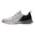 Der FJ Fuel Golfschuh zeichnet sich durch seine dynamische Kombination aus sportlichem Design und höchster Funktionalität aus. Er wurde entwickelt, um Golfern auf jedem Terrain überlegenen Komfort, Stabilität und Traktion zu bieten. Das leichte Stratolite-Dämpfungssystem sorgt für eine federleichte Schrittdämpfung, die Ermüdung reduziert und den Gehkomfort während der gesamten Golfrunde maximiert. Die innovative Power Stabiliser-Außensohle, inspiriert von der bewährten Pro|SL-Technologie, garantiert einen exzellenten Grip und eine verbesserte Bodenhaftung ohne Spikes. Mit seinem wasserdichten Mikrofaser-Obermaterial bleiben deine Füße bei jeder Wetterlage trocken und geschützt, während das pflegeleichte Material eine dauerhaft frische Optik gewährleistet. Die Flex Last Technologie mit abgerundeter Zehenpartie und schmalerer Ferse unterstützt eine athletische Passform und bietet optimale Unterstützung während des Golfschwungs.