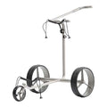 Der JuStar Titan Classic 1.0 Elektrotrolley setzt neue Maßstäbe in Sachen Komfort und Performance auf dem Golfplatz. Seine Konstruktion aus hochwertigem Titan garantiert nicht nur ein geringes Gewicht von lediglich 6,5 kg, sondern auch eine außergewöhnliche Robustheit und Widerstandsfähigkeit gegenüber den Elementen. Die intuitive Bedienung erfolgt über einen stufenlosen Energieregler, der eine feinfühlige Anpassung der Geschwindigkeit ermöglicht und somit eine präzise Kontrolle über den Trolley sicherstellt. Die stabile Dreiradkonstruktion sorgt für exzellente Manövrierbarkeit und sicheren Stand, selbst in anspruchsvollem Gelände. Eine integrierte elektronische Bergab-Bremse bietet zusätzliche Sicherheit, indem sie das Tempo auf Gefällstrecken automatisch reguliert. Dieses Modell richtet sich an anspruchsvolle Golfer, die einen zuverlässigen und ästhetisch ansprechenden elektrischen Golftrolley suchen, der jede Runde erleichtert und die Konzentration vollständig auf das Spiel lenkt.