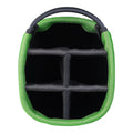 Mit dem wasserabweisenden Feather Standbag bekommst du eine sehr leichte Golftasche mit nur 1,4 kg, ohne, dass du dabei auf wichtige Funktionen verzichten musst. Das 5-Fach Lightweight Top besitzt durchgehende Divider die verhindern, dass die Schläger gegeneinander schlagen und ein unangenehmes Begleitgeräusch beim Golf spielen entsteht. Der Einsatz von besonders leichtem Nylon sparen deutlich Gewicht und lassen dich auf der Runde vergessen, dass du eine Golftasche auf den Schultern trägt. Die 6 besonders geräumigen, wasserabweisenden Taschen bieten dir viel Stauraum, darunter befindet sich auch eine Kühltasche in der du deine Getränke jederzeit kühlen kannst.